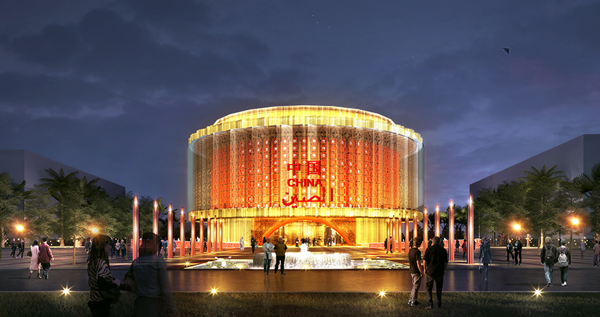 2020年迪拜世博會中國館,建筑名為“華夏之光”,以“構建人類命運共同體——創新和機遇”為主題。