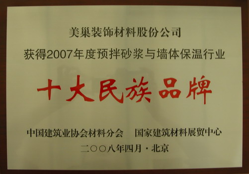 2007年度預(yù)伴砂漿與墻體保溫行業(yè)“十大民族品牌”