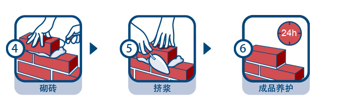 | 施工事項: | 砌筑過程中應充分擠漿,及時清理磚縫擠出的多余砂漿。需要校直時,必須在砂漿初凝前完成。攪拌好的砂漿須在2小時內用完。 |